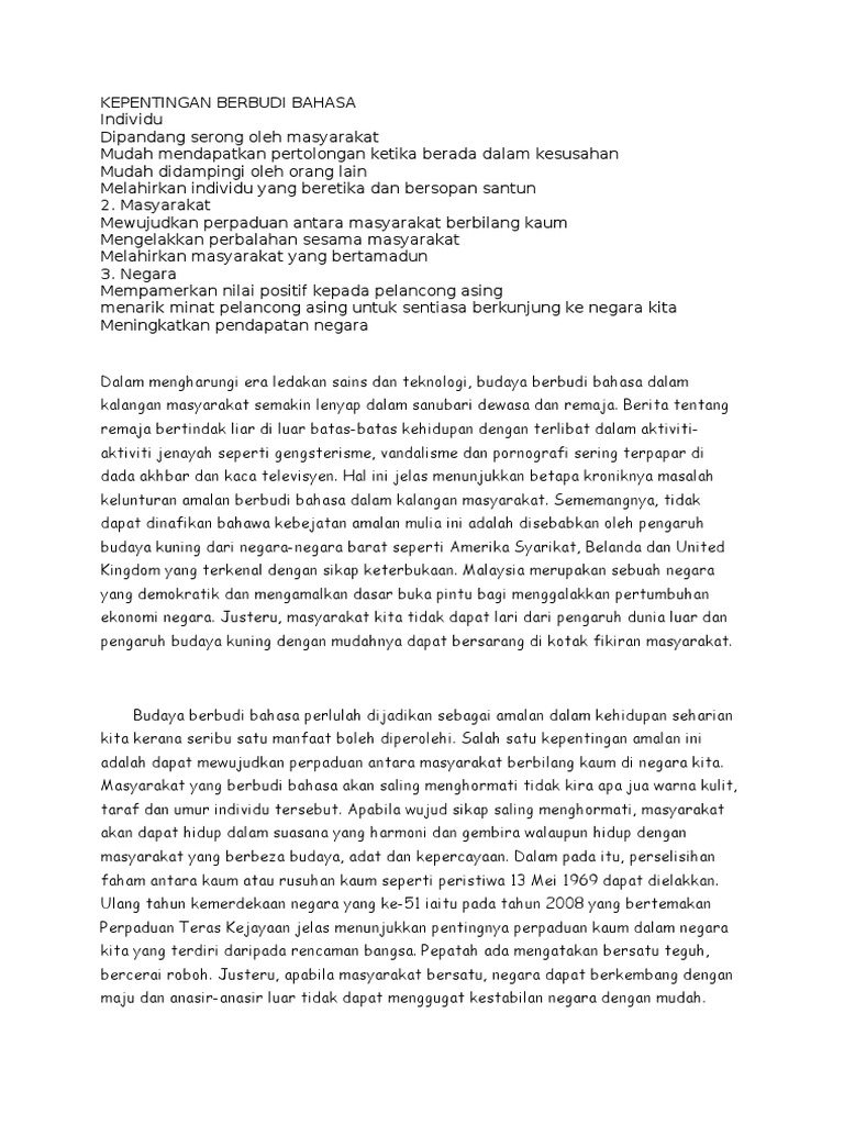 Kepentingan Amalan Berbudi Bahasa Dalam Kalangan Masyarakat Pdf
